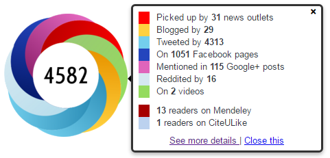 With Altmetric, track the impact of your Project Page on the community through mentions tracked in a rich variety of sources. Currently requires registration with Project-Pages admins to set up.